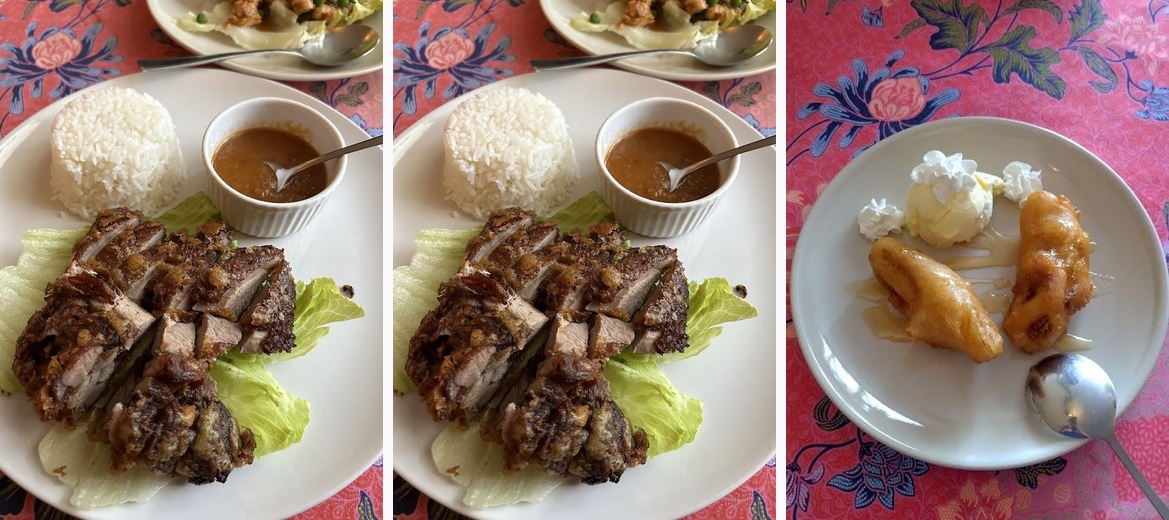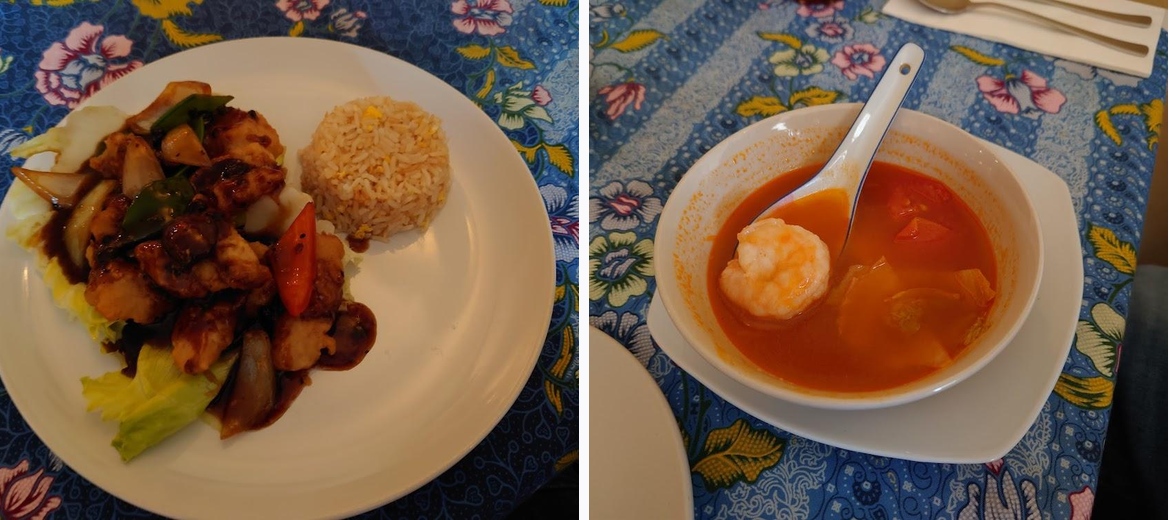 Great value and lovely food. Mains are all less than £10 including rice. Starters cost up to £6, but most are less. Drinks include a large bottle of Singha or Tiger for £4.50. We had starters and main for 5 and it cost just over £80. Excellent value and very friendly staff.